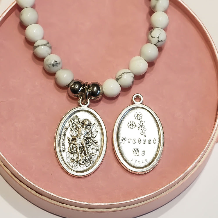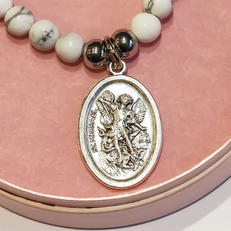 The St Michael Bracelet is made for those facing challenges, needing inner strength, or seeking spiritual protection. Known as the archangel and protector against evil, St Michael is often called on for bravery, justice and defence in times of struggle.
