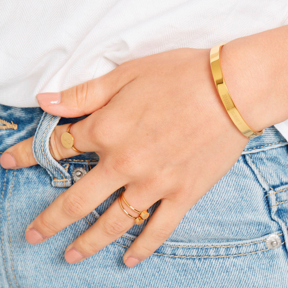 Put your personal stamp on our elegant Engravable Cuffs, perfect for adding a unique touch to your jewellery collection. Whether it's a word that holds special meaning, a significant date, or a phrase that speaks to your heart, our cuffs allow you to create something truly personal. Enhance the style with Roman numerals or coordinates for an extra layer of sophistication.